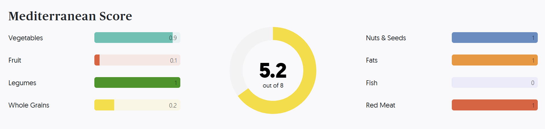At its core, the Med Score is calculated from foods logged by the patient over a set period. The system identifies and tracks servings across key food categories - such as vegetables, fruits, whole grains, legumes, nuts and seeds, fish, red meat, and healthy fats. It also evaluates added components including sugary beverage consumption, ultra-processed desserts, omega-3 intake, and whether omega-3s are being consumed through food or supplements.